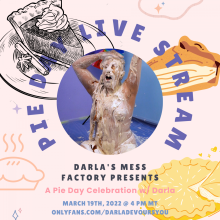 We're bringing back a Pie Day Celebration in the Messy Factory this year! It's officially been two years since my last big pie day live stream event and I'm ready to get WILD. I'll be preparing "mystery pies" and covering them with tin foil so that I have no idea what's about to hit me... and we'll spinning my Wheel of Messy Fortune to find out which ones will land on me first :halo: Pie sandwiches, pie sits, monster pies.. you name it, we're gonna do it ALL this Saturday!! I hope you can join us :love: