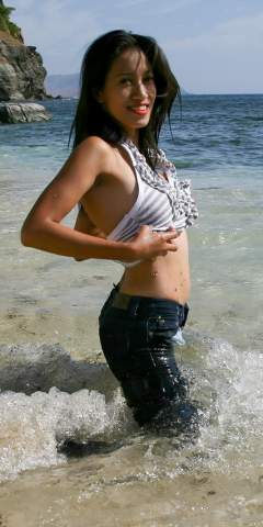 Steph_nageur got pulled into the shower by PreppyGuy with his clothes on